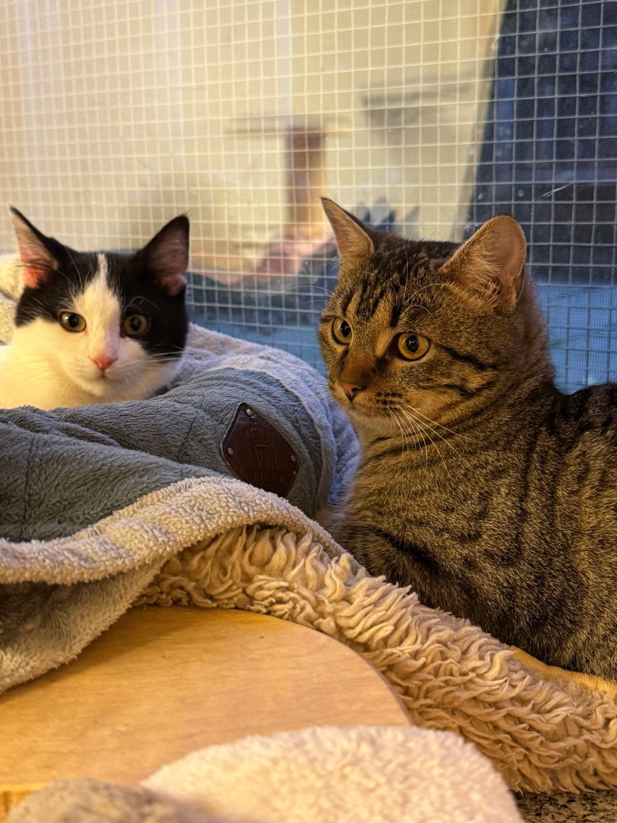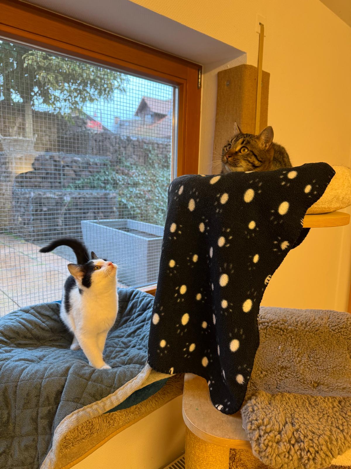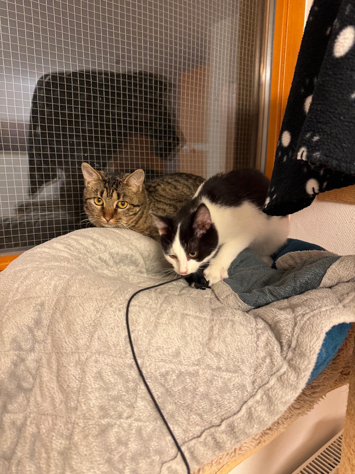 Pino ist gegenüber Menschen noch vorsichtig. Er lässt Nähe bereits zu, genießt erste Streicheleinheiten, braucht aber Zeit, Geduld und einen ruhigen Alltag. Lio hingegen sprüht vor Zuneigung, schnurrt viel, liebt Schmuseeinheiten und gibt diese Sicherheit ganz selbstverständlich an seinen Freund weiter. Zusammen sind sie ein eingespieltes Team: spielen, kuscheln, beobachten – und sich gegenseitig stärken.