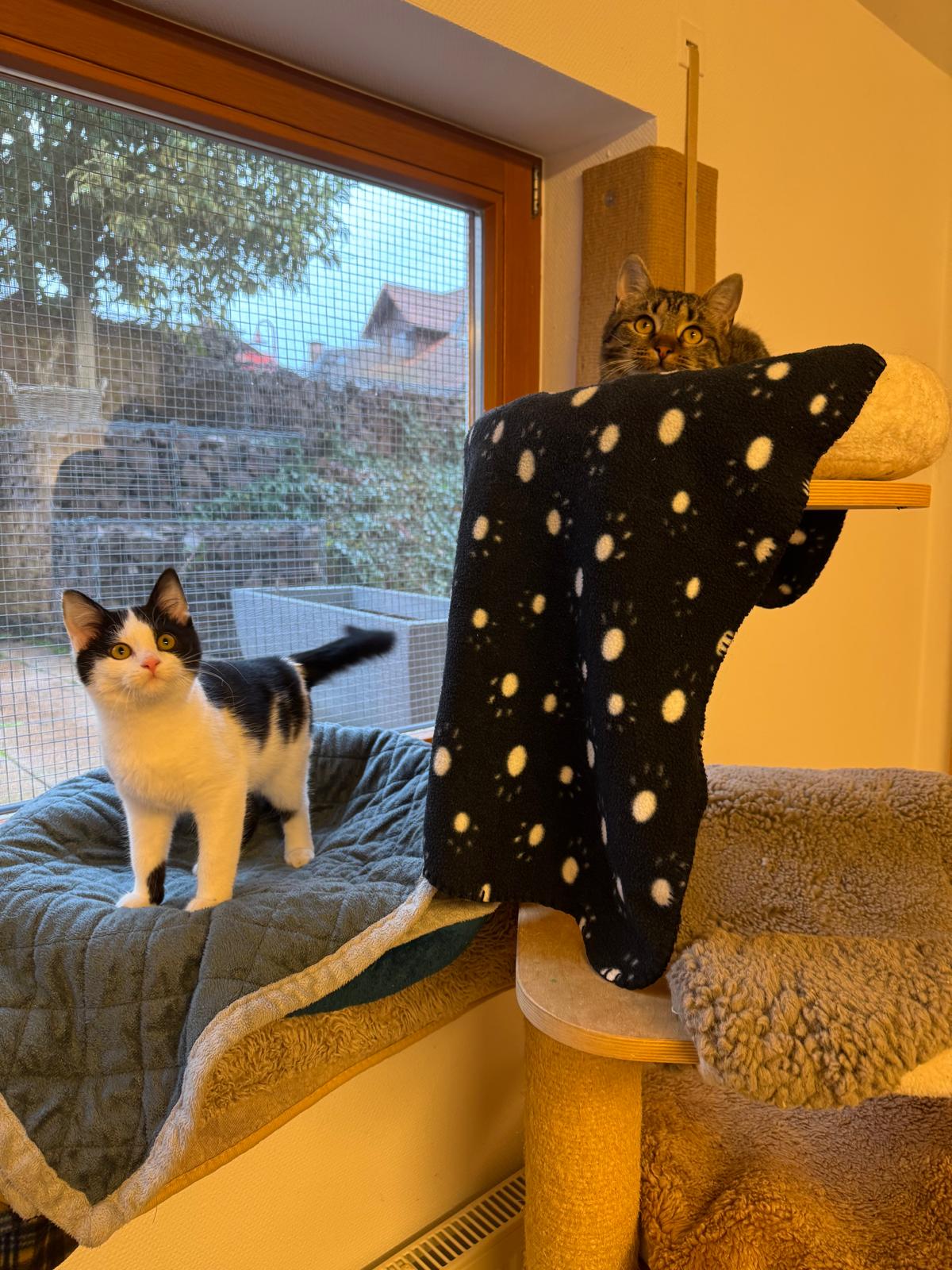 Mein Name ist Lio und ich wurde im August 2025 geboren. Ich und ein weiteres Geschwisterchen wurde auf einem landwirtschaftlichen Hof geboren. Der Landwirt bot meiner Mama Schutz, einen Unterschlupf, Futter und versorgte uns alle. Meine Mama wurde mittlerweile auch kastriert und sie lebt, mit meinem Geschwisterchen weiterhin auf dem Hof. Durch den Menschenkontakt bin ich entsprechend offen, sozial und menschenbezogen. Als ich dann auf Pino traf, war es Freundschaft auf den ersten Blick. Ich zeige Pino, dass Mensch ganz toll sind und man keine Angst vor ihnen braucht. Dies hat er jetzt auch verstanden und macht täglich große Fortschritte. Meine Pflegemama sagt, dass ich vor Liebe nur so sprühe und für Pino ein sicherer Anker bin. Wir sind ein absolutes Dreamteam.