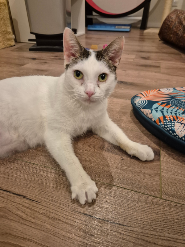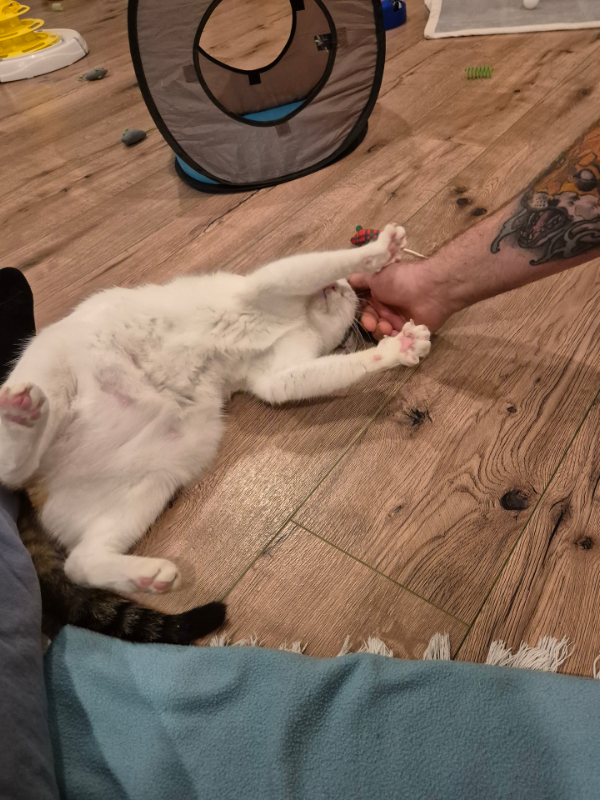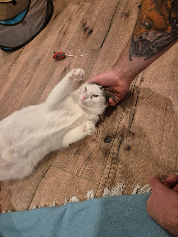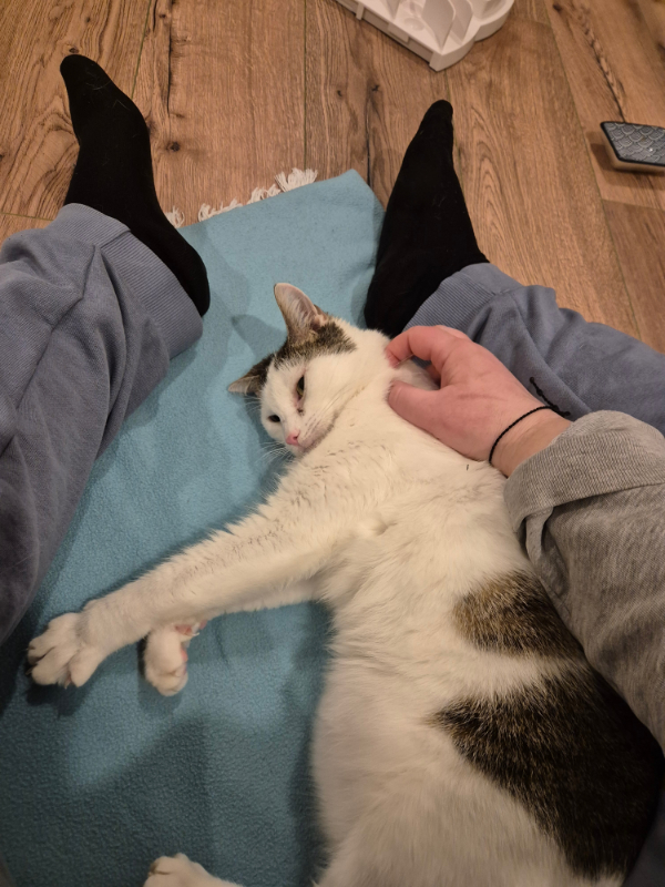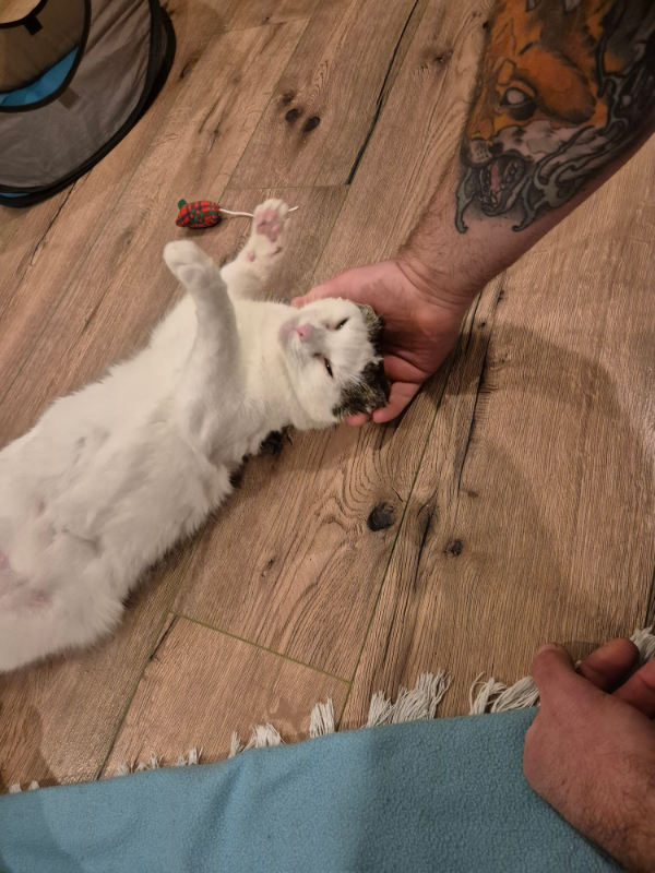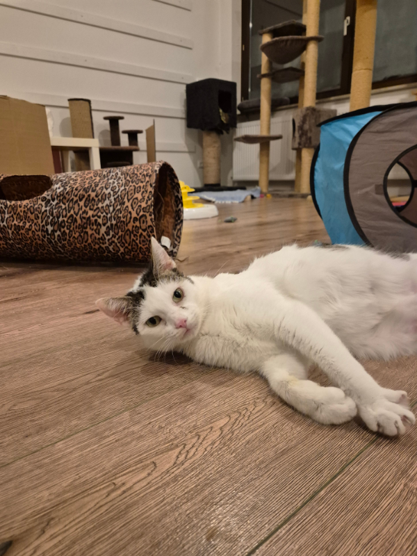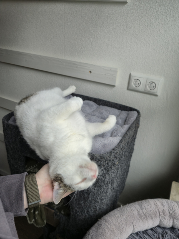 Sie kümmerte sich liebevoll um ihre Kitten. Püppi liebt Menschen, sie ist offenherzig und sehr verschmust. Was sie in ihrer Vergangenheit erlebt haben muss, war unfassbar traumatisierend und schrecklich. So sehr, dass sie damals die Liebe zu uns Menschen ausblenden musste, um ihre Kinder zu beschützen. Durch ihr starkes Schutzverhalten wurde alles, was ihren Jungen zu nahekam, konsequent abgewehrt – auch vertraute Personen wie die Pflegemama. Dieses Verhalten war kein „Aggressionsproblem“, sondern Ausdruck von Überforderung und Schutzinstinkt.